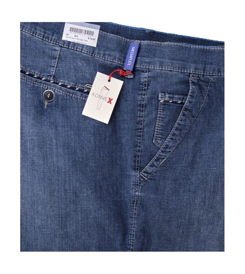 Big Man Bermuda lage taille comfortabel kwaliteit netjes afgewerkt sportieve look lusjes voor riem stretch afgewassen 5 pocket 100%kleurvast 91%katoen, 7%polyester, 2%elasthaan 40°was kleur : donkere jeans