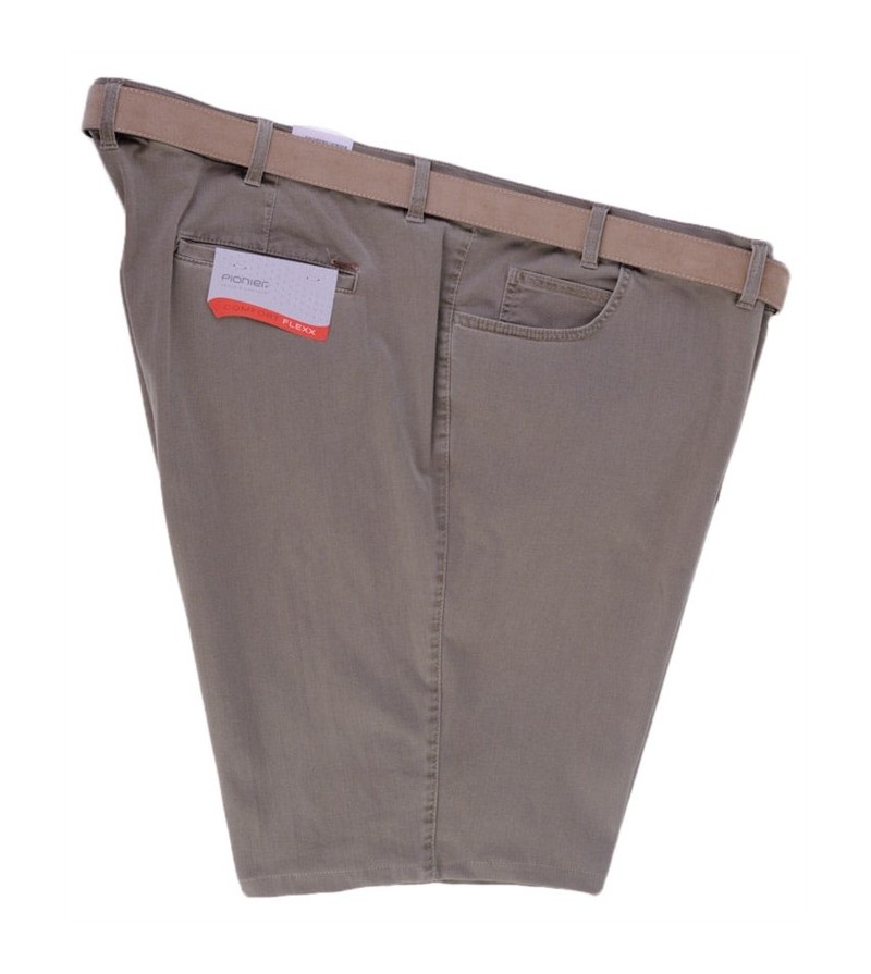 Big Man Bermuda lage taille lusjes voor riem geen stretch! Neem 1 maat groter model: chino 2 steekzakken 2 achterzakken met knoop 100%katoen met fijn structuurtje kleur: beige