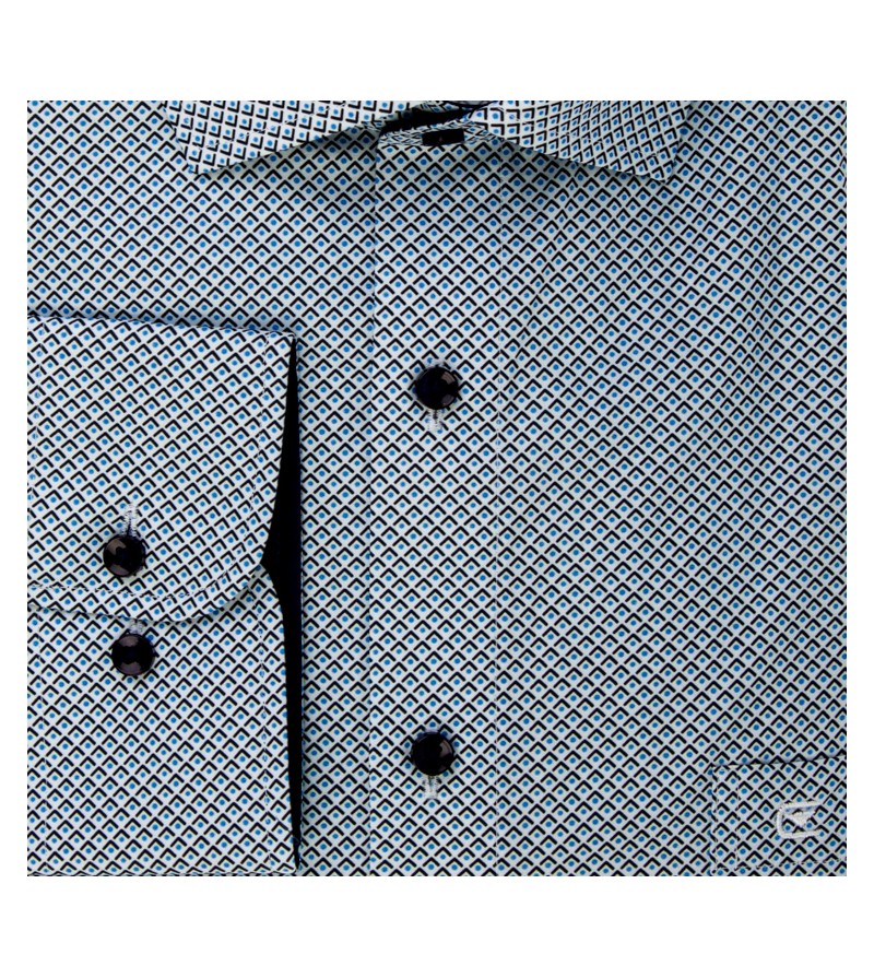 Extra Lang Overhemd OPLETTEN EXTRA LANG comfort fit kent kraag lange mouwen borstzakje extra lengte leuk motief 100%katoen kleur: blauw
