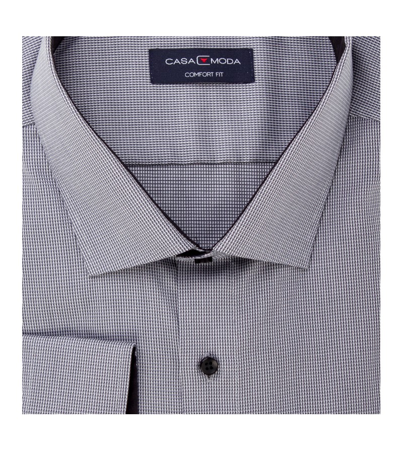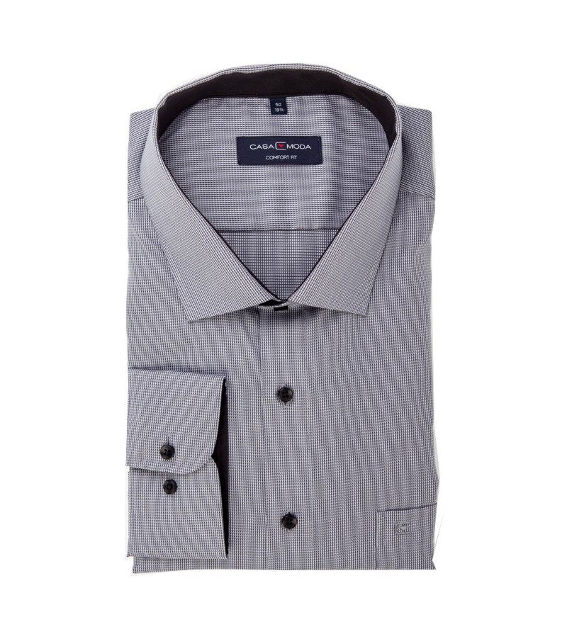 Grote Maten Overhemd lange mouw ruime pasvorm comfort fit kent kraag strijkvrij netjes afgewerkt comfortabel 100%katoen 40°was kleur: lichtb met fijn structuurtje kleur: grijs