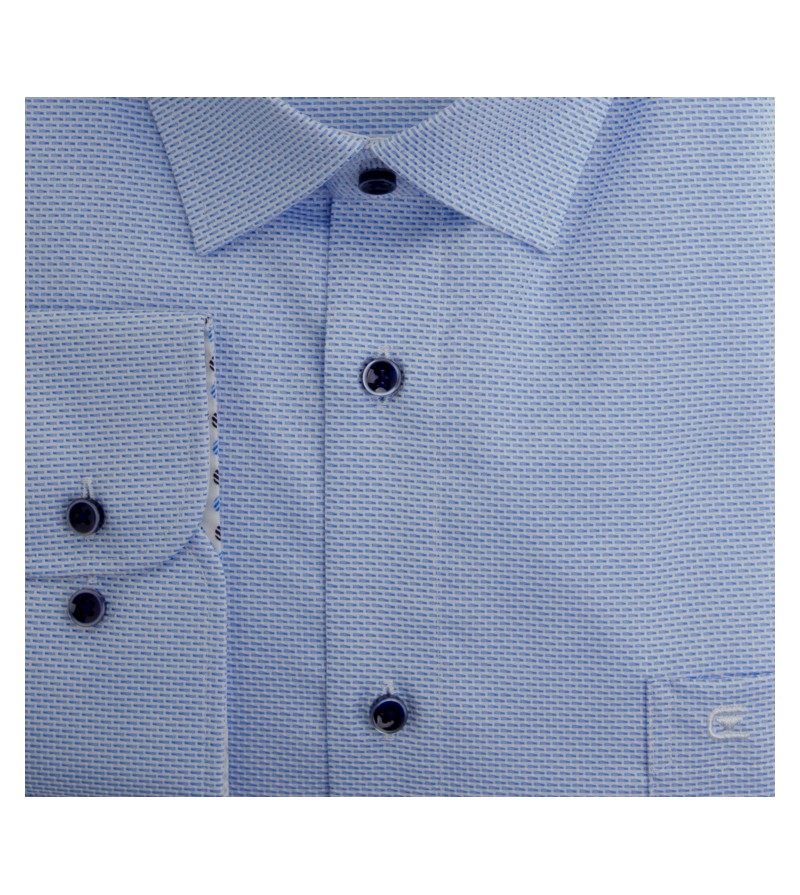 Extra Lang Overhemd OPLETTEN EXTRA LANG comfort fit kent kraag lange mouwen borstzakje extra lengte leuk motief 100%katoen kleur: blauw