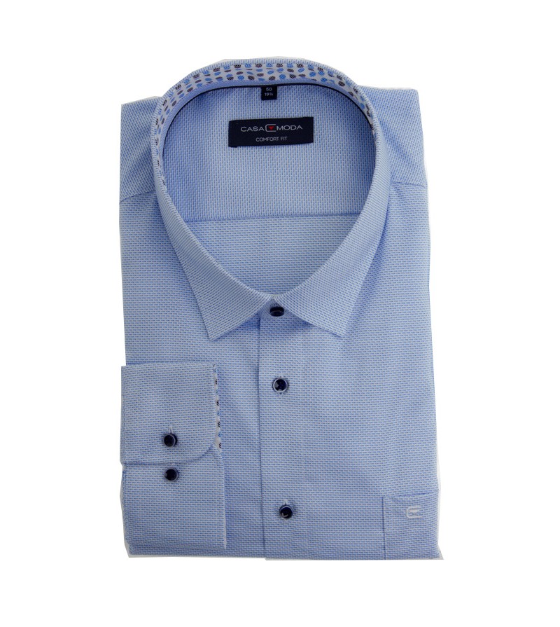 Grote Maten Overhemd lange mouw ruime pasvorm comfort fit kent kraag strijkvrij netjes afgewerkt comfortabel 100%katoen 40°was kleur: lichtb met fijn structuurtje kleur: grijs
