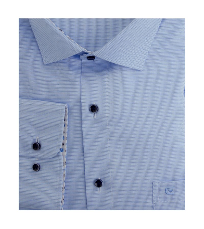 Extra Lang Overhemd OPLETTEN EXTRA LANG comfort fit kent kraag lange mouwen borstzakje extra lengte leuk motief 100%katoen kleur: blauw