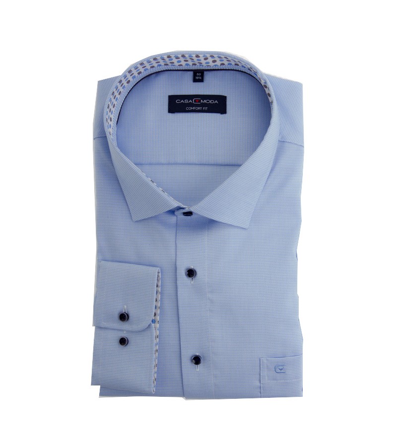 Grote Maten Overhemd lange mouw ruime pasvorm comfort fit kent kraag strijkvrij netjes afgewerkt comfortabel 100%katoen 40°was kleur: lichtb met fijn structuurtje kleur: grijs