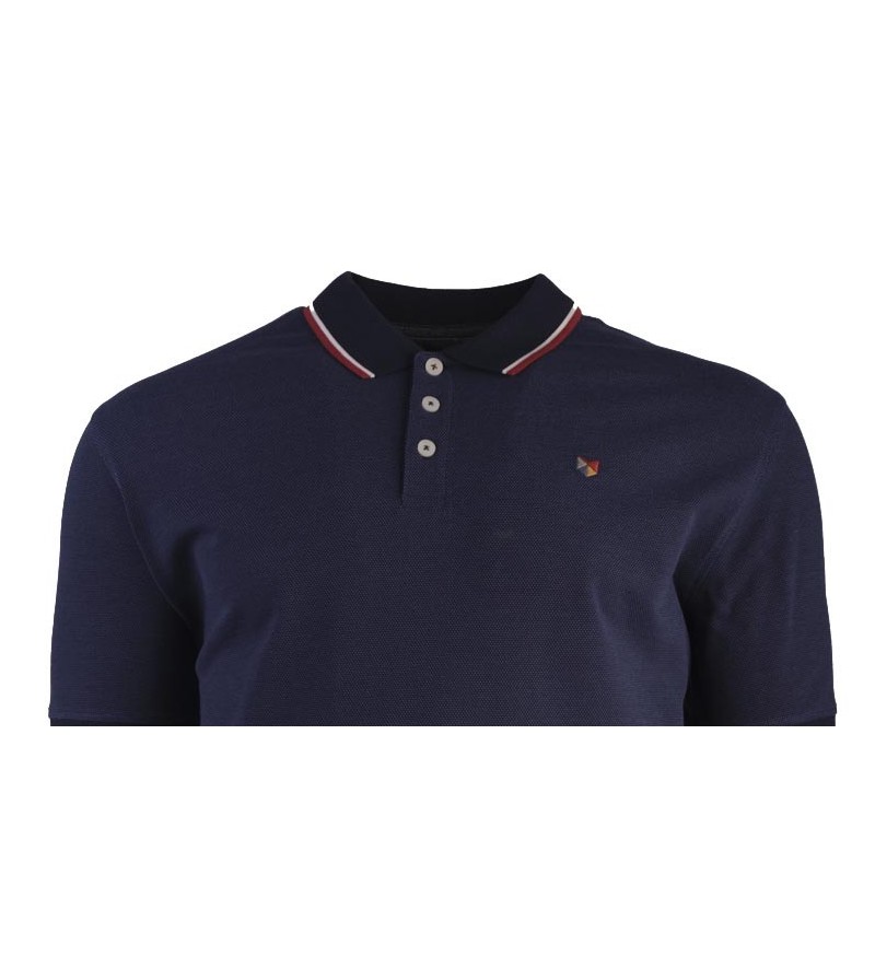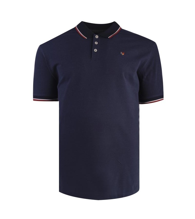 Grote Maten Overhemd lange mouw non iron strijkvrij biesje in marine blauw ruime pasvorm comfort fit kent kraag strijkvrij netjes afgewerkt comfortabel 100%katoen 40°was met fijn structuurtje blauwe knopen kleur: wit met marine blauw contrasten