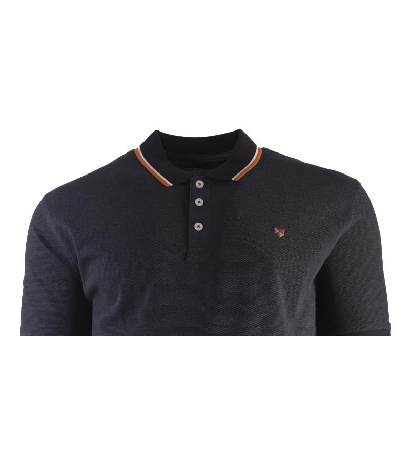Grote Maten Overhemd lange mouw non iron strijkvrij biesje in marine blauw ruime pasvorm comfort fit kent kraag strijkvrij netjes afgewerkt comfortabel 100%katoen 40°was met fijn structuurtje blauwe knopen kleur: wit met marine blauw contrasten