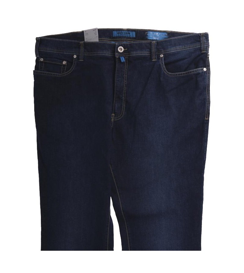 Big Man Jeans Model: Peter hoge taille cleane wassing 2 achterzakken 2voorzakken ritssluiting en knoop netjes afgewerkt grijze stiksel 98% katoen, 2%elasthaan 40°was kleur : dark stone washed