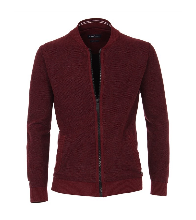 Tall Man Cardigan met ritssluiting 2 zakken boord onderaan goede lengte comfortabel netjes afgewerkt 100%katoen 30°was kleur: rood
