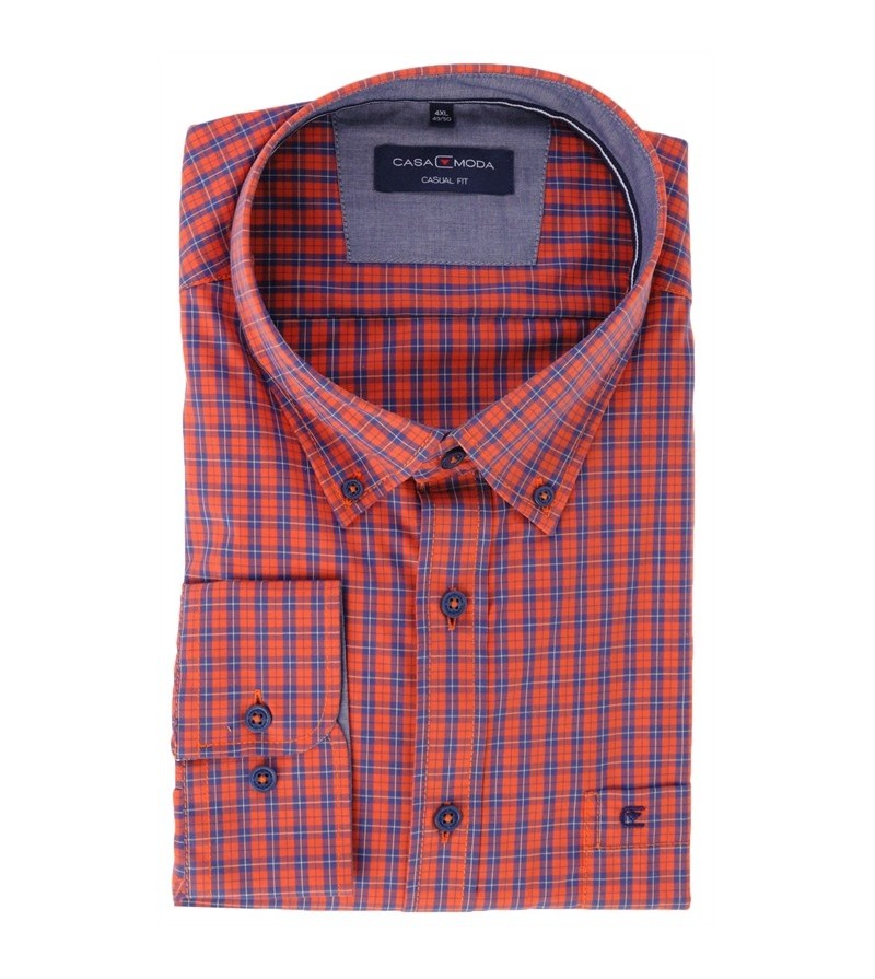 casual fit hemd zeer trendy overhemd lange mouw borstzakje button down kraag netjes afgewerkt subtiel ruitjes patroon sportieve look 100%katoen 40°was kleur : rood/ roest/ bruin