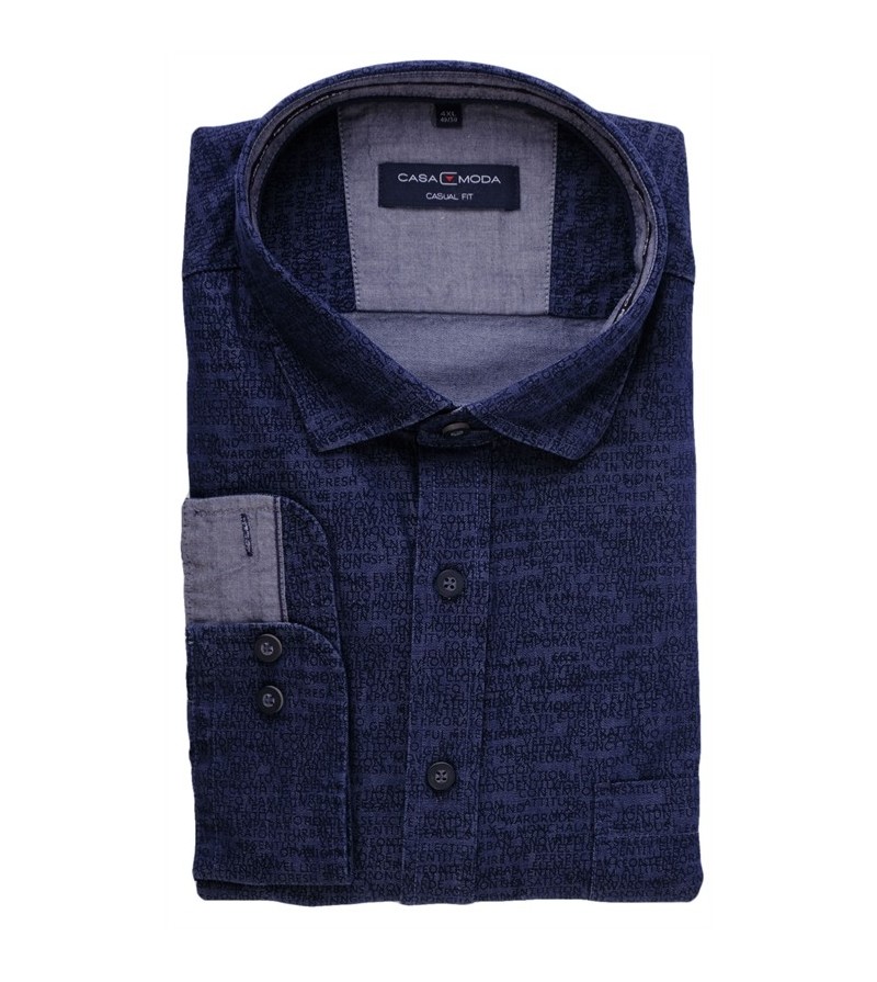 Casual fit hemd met mooie details valt kleiner uit dan comfort fit met kent kraag met borstzakje 100% katoen mooie details kleur: blauw, marine en grijs tinten