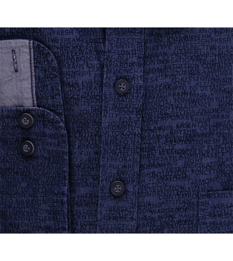 casual fit hemd zeer trendy overhemd schattige knoopjes geen borstzakje lange mouw button down kraag leuk motief comfortabel netjes afgewerkt mooie accenten 100%katoen 30°was kleur: blauw en grijs tinten