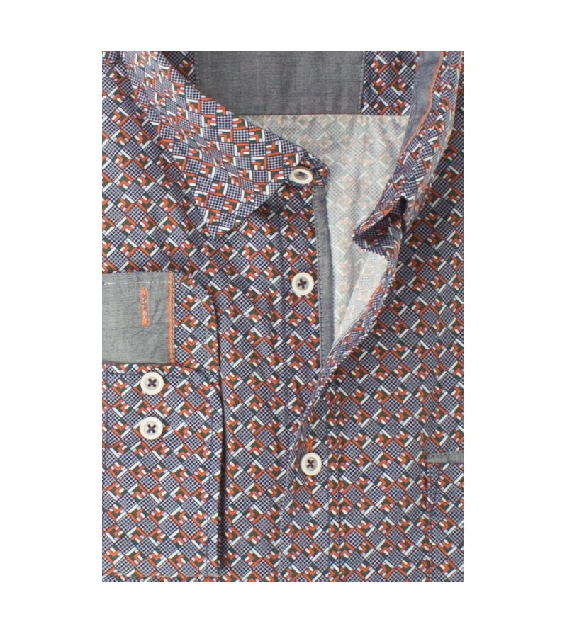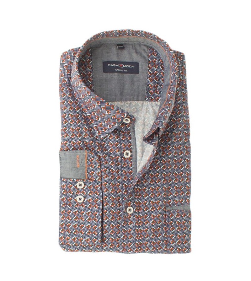 Big Man Hemd lange mouwen lange romplengte comfort fit cashmere feeling button down kraag bostzakje sportieve look comfortabel niet strijken mooi motief 100%katoen 30°was kleur: navy / rood