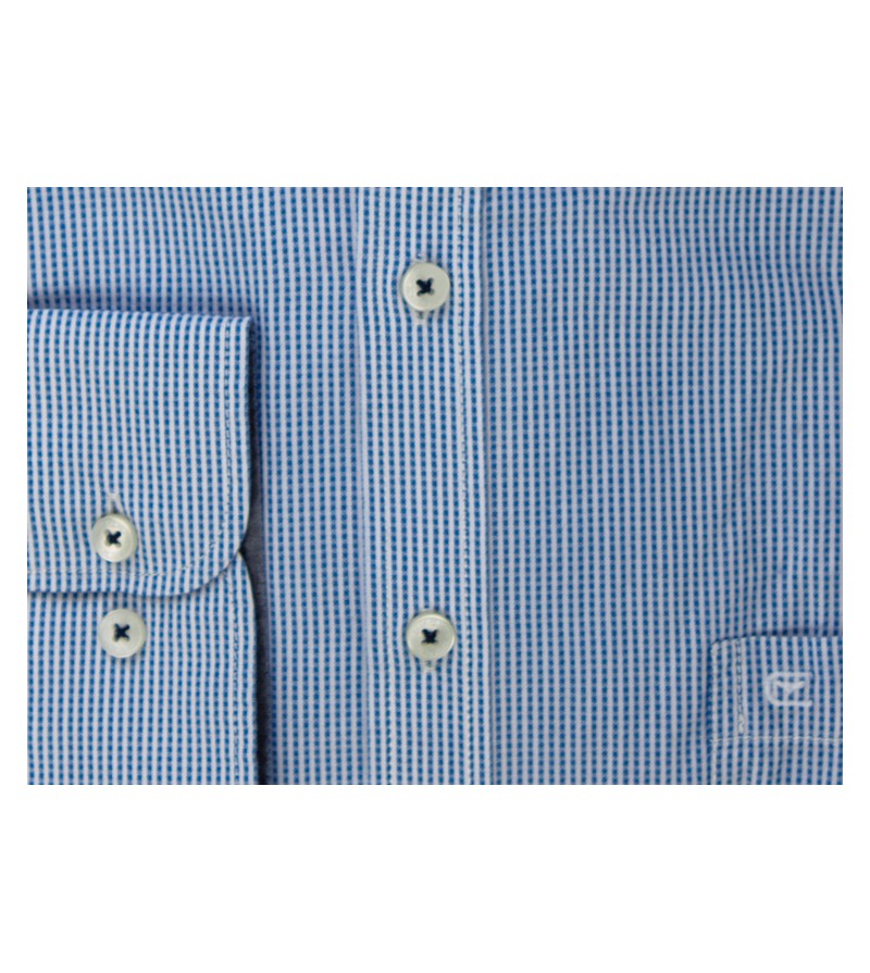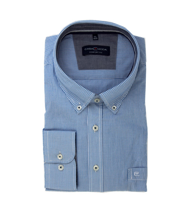 Big Man Hemd comfort fit lange mouwen kent kraag borstzakje subtiele ruitjes comfortabel kwaliteit 100%katoen 40°was kleur: blauw / wit