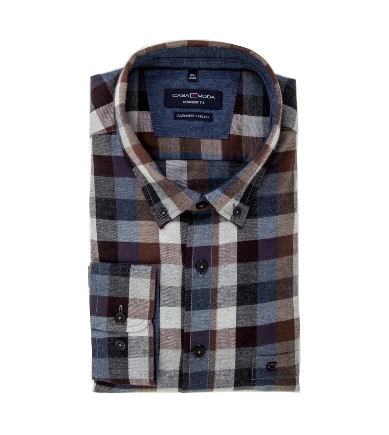Big Man Hemd lange mouw comfort fit kent kraag borstzakje cashmere feeling ruitjes motief sportieve look comfortabel kwaliteit 100%katoen 30°was