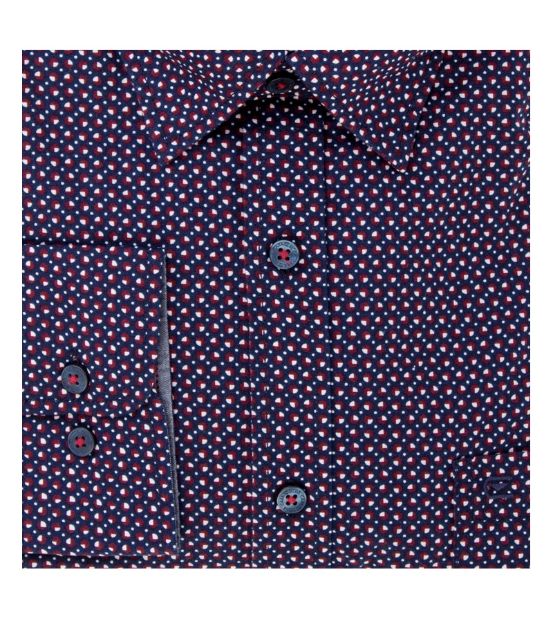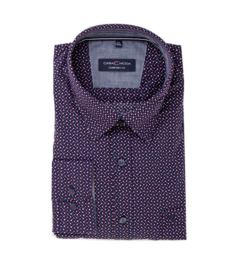 Big Man Hemd lange mouwen lange romplengte comfort fit cashmere feeling button down kraag bostzakje sportieve look comfortabel niet strijken mooi motief 100%katoen 30°was kleur: navy / rood