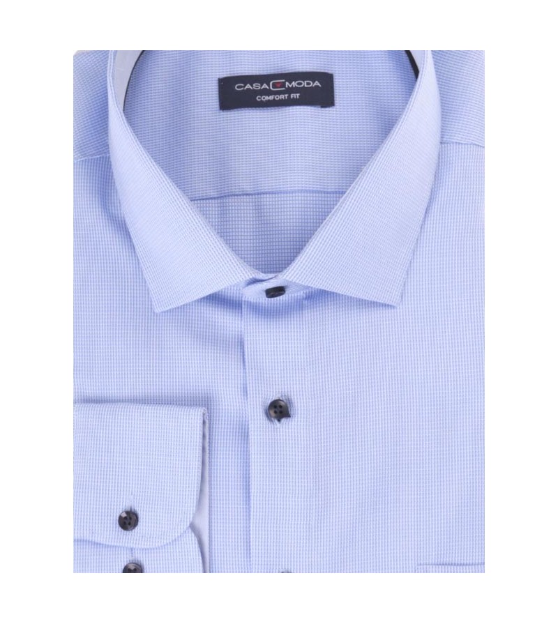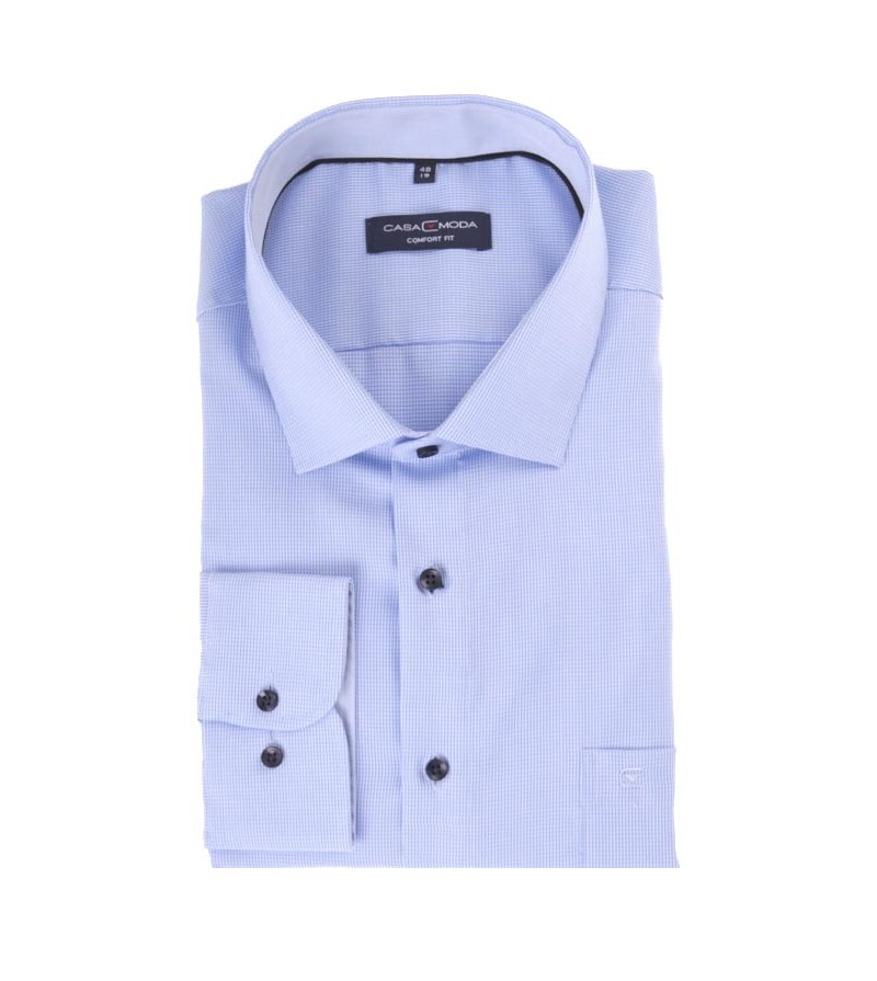 Big Man Hemd comfort fit lange mouwen kent kraag borstzakje subtiele ruitjes comfortabel kwaliteit 100%katoen 40°was kleur: blauw met stipje