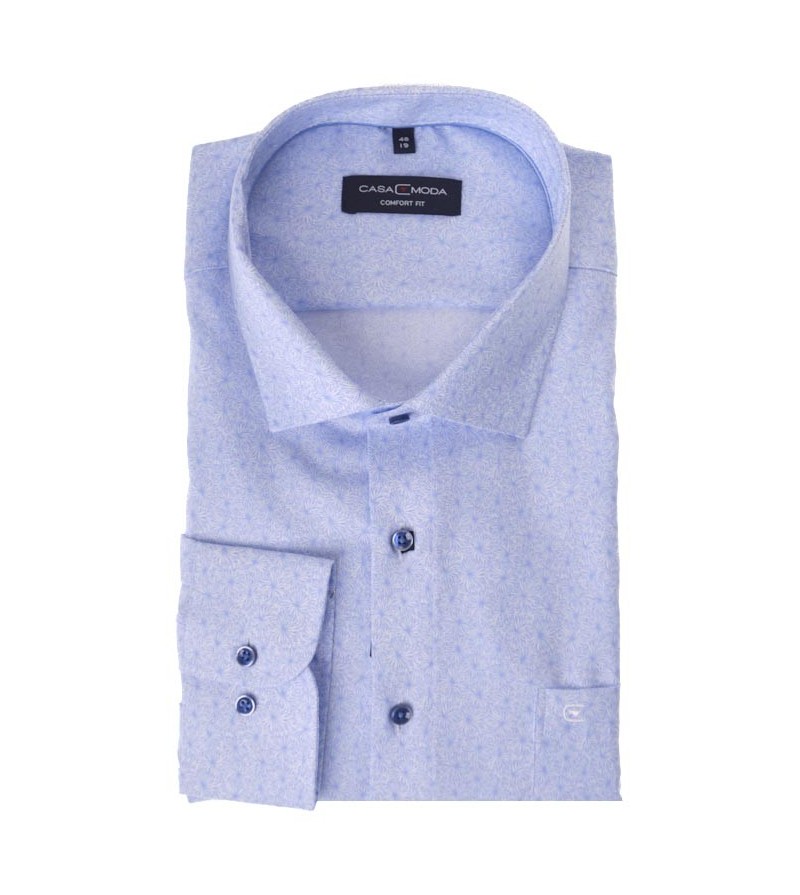 Big Man Hemd lange mouw comfort fit kent kraag borstzakje bloemetjesmotief comfortabel kwaliteit goede pasvorm 100%katoen 30°was kleur : blauw