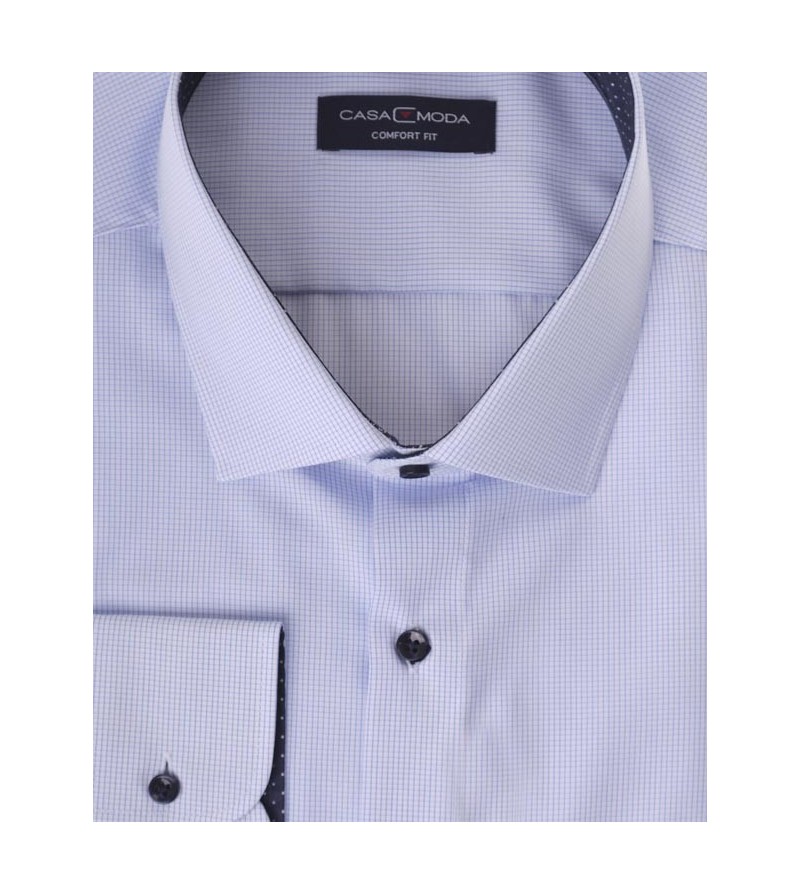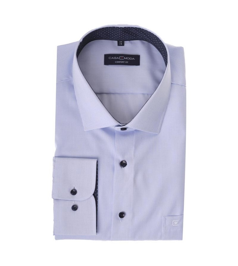 Big Man Hemd comfort fit lange mouwen kent kraag borstzakje subtiele ruitjes comfortabel kwaliteit 100%katoen 40°was kleur: blauw met stipje