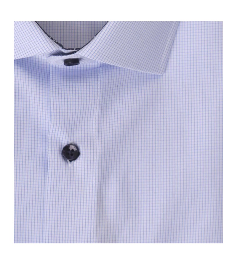 Big Man Hemd comfort fit lange mouwen kent kraag borstzakje subtiele ruitjes comfortabel kwaliteit 100%katoen 40°was kleur: blauw / wit