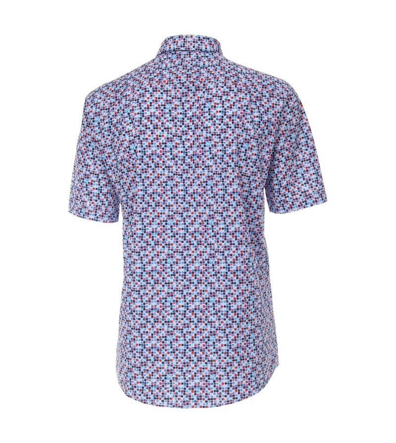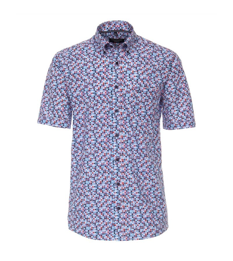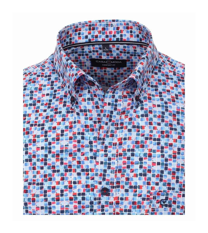 Big Man Hemd korte mouw comfort fit kent kraag borstzakje netjes afgewerkt kwaliteit comfortabel leuk motief 100%katoen 40°was kleur: blauw/ rood