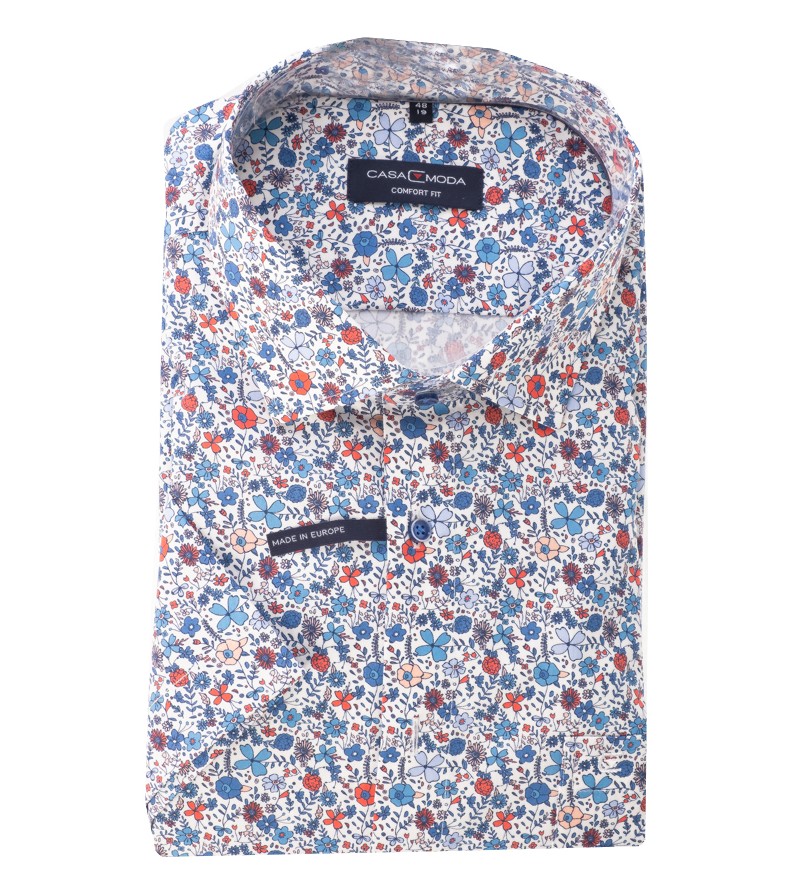 Big Man Hemd korte mouw comfort fit kent kraag borstzakje netjes afgewerkt kwaliteit comfortabel leuk motief 100%katoen 40°was kleur: blauw/ rood