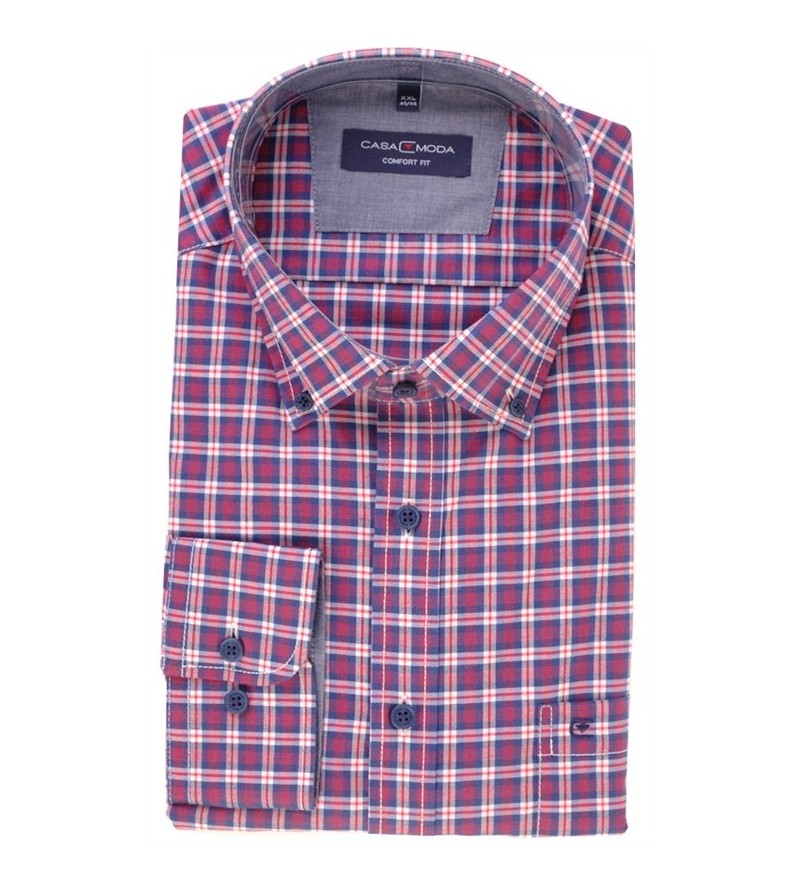 Big Man Hemd comfort fit lange mouwen kent kraag borstzakje subtiele ruitjes comfortabel kwaliteit 100%katoen 40°was kleur: rood / grijs / blauw