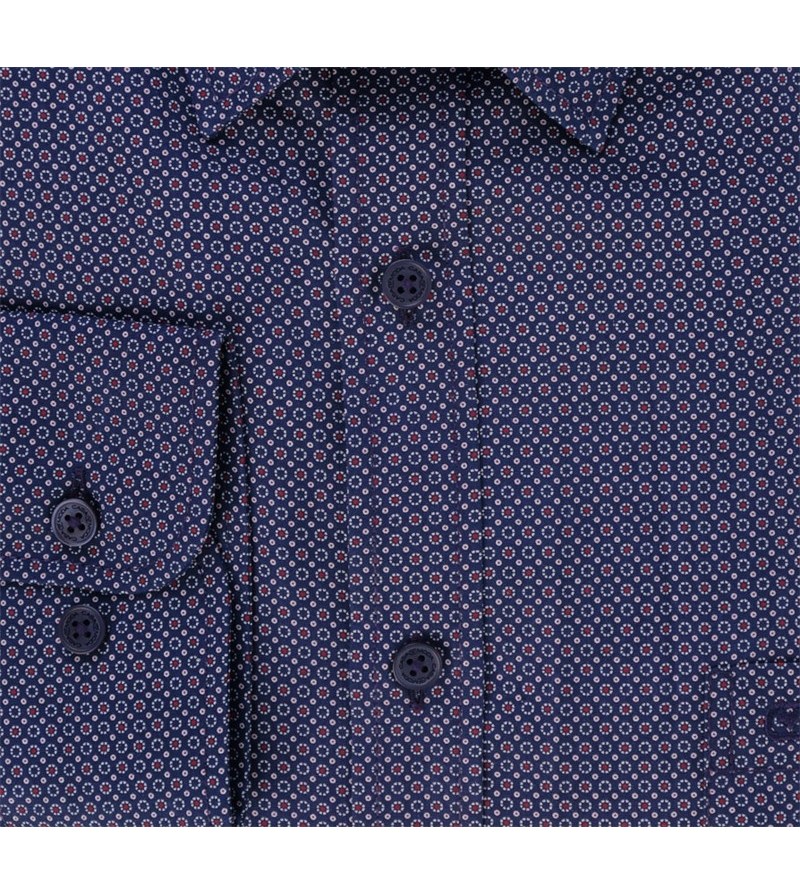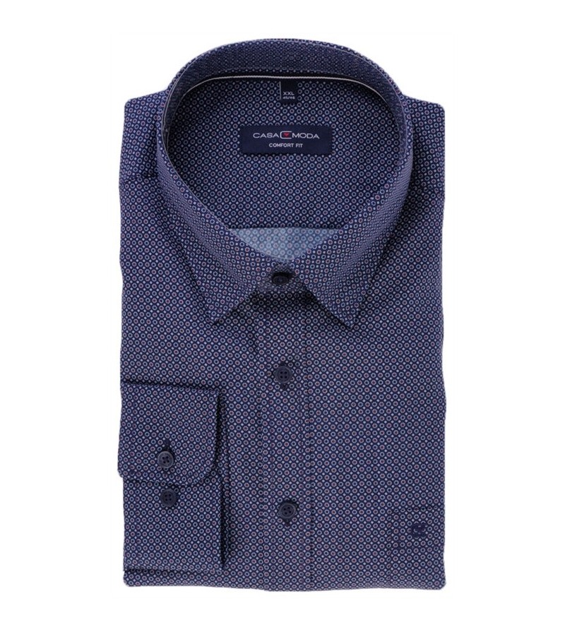 Big Man Hemd lange mouwen lange romplengte comfort fit cashmere feeling button down kraag bostzakje sportieve look comfortabel niet strijken mooi motief 100%katoen 30°was kleur: navy / rood