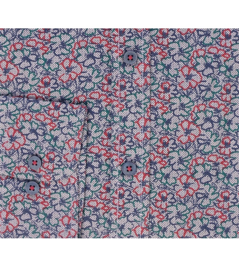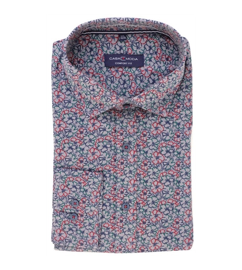 Big Man Hemd lange mouw comfort fit kent kraag borstzakje bloemetjesmotief comfortabel kwaliteit goede pasvorm 100%katoen 30°was kleur : blauw