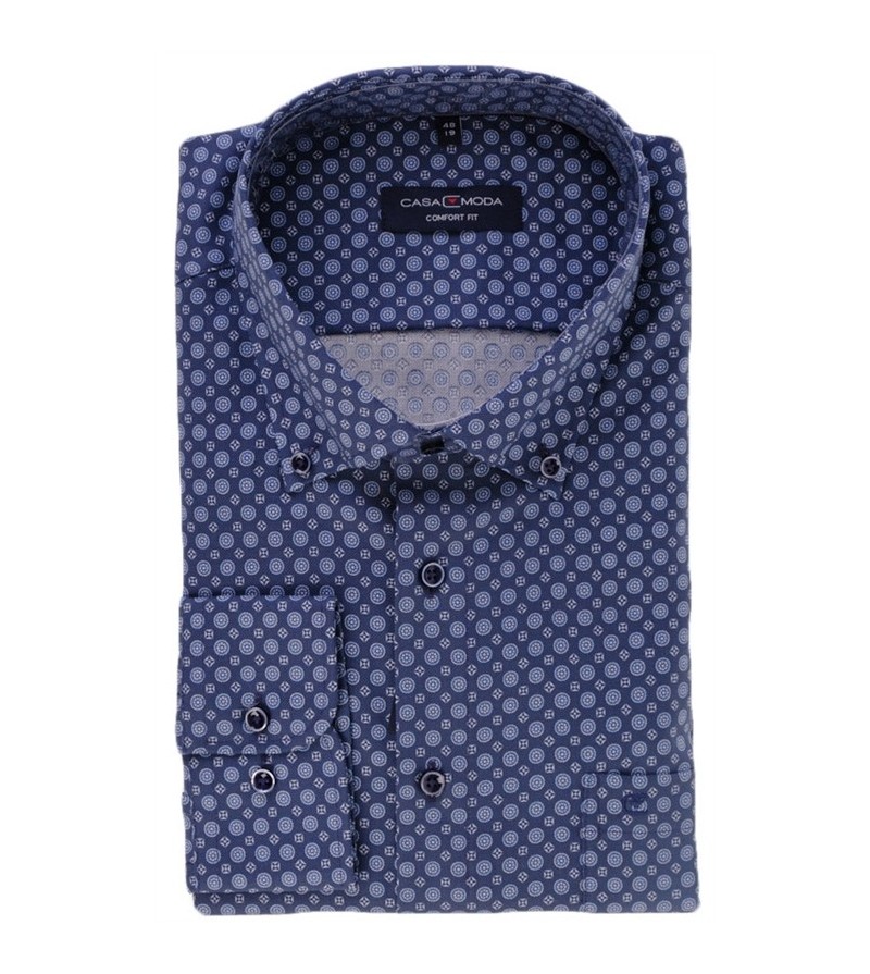 Grote Maten Overhemd lange mouw strijkvrij met borstzakje button down kraag casual fit goede pasvorm goede lengte krimpt niet bij het wassen 100%katoen prachtige print hededaags! kleur: blauw tinten