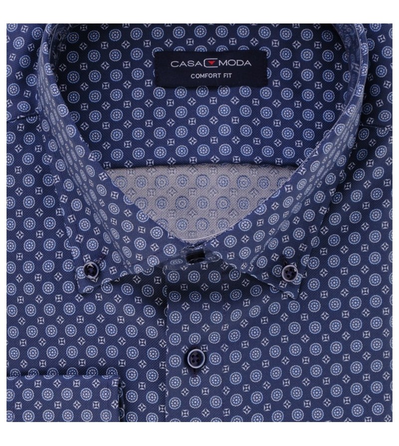 Big Man Hemd lange mouw comfort fit button down kraag borstzakje leuk motief comfortabel kwaliteit sportieve look 100%katoen 30°was kleur : navy