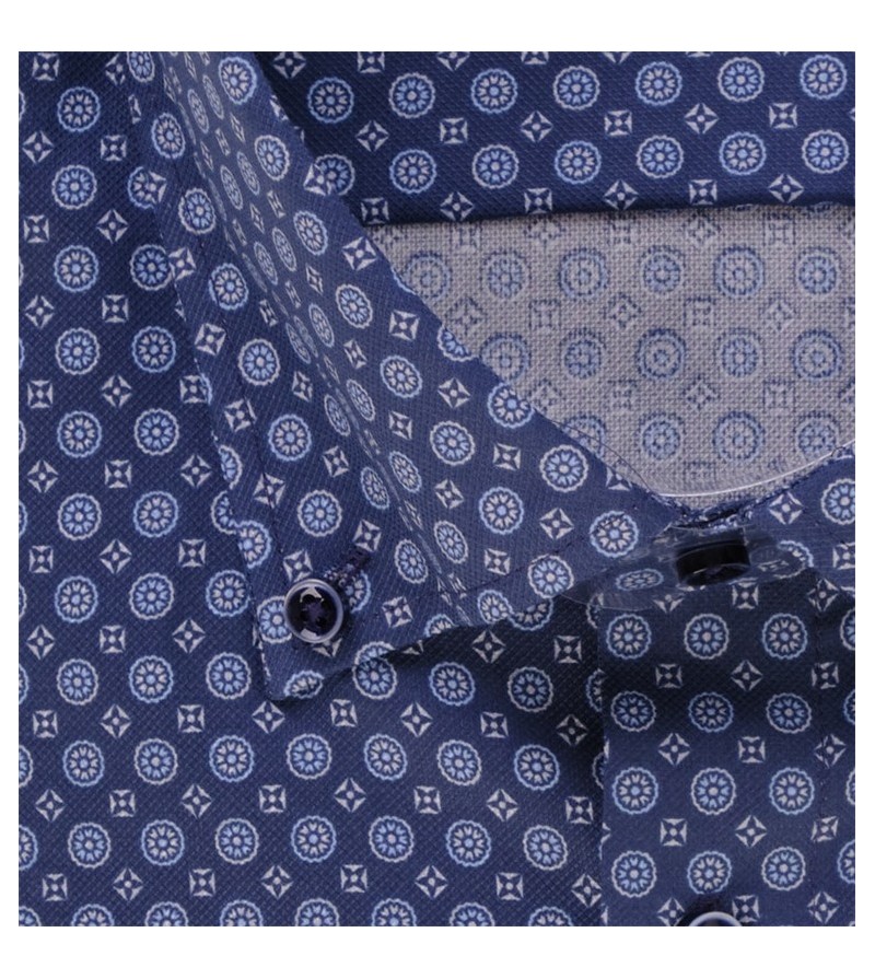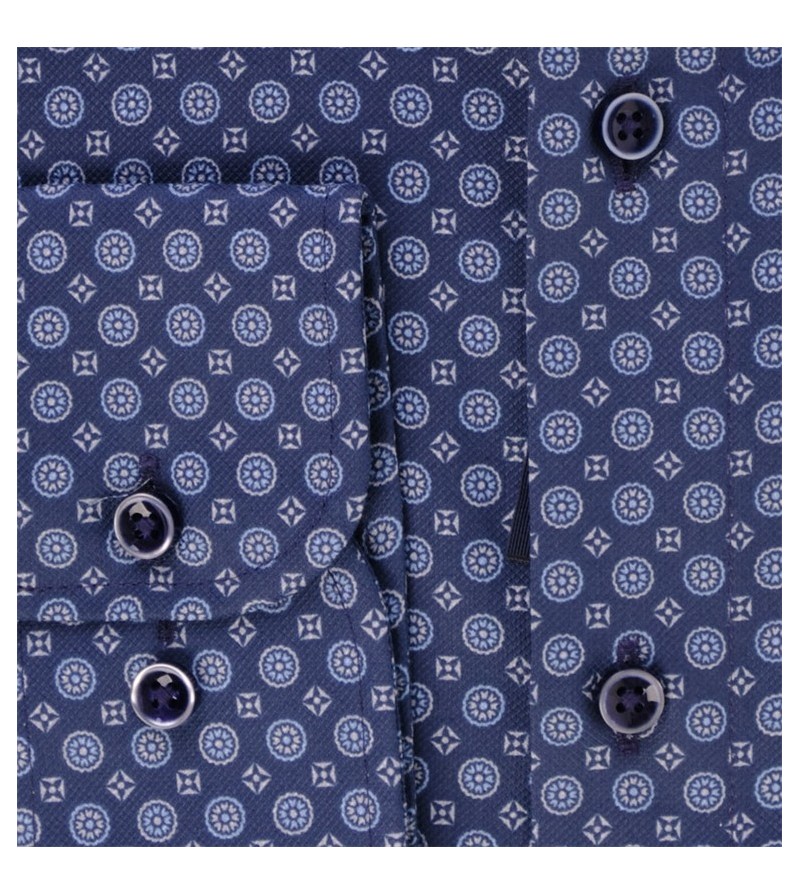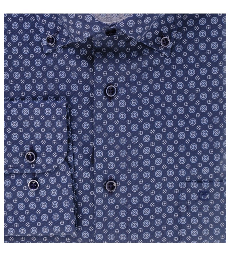 Big Man Hemd lange mouw comfort fit kent kraag borstzakje bloemetjesmotief comfortabel kwaliteit goede pasvorm 100%katoen 30°was kleur : blauw