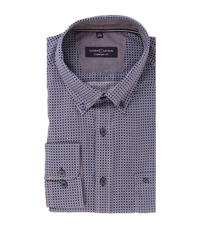 Big Man Hemd lange mouw comfort fit button down kraag borstzakje leuk motief comfortabel kwaliteit sportieve look 100%katoen 30°was kleur : navy