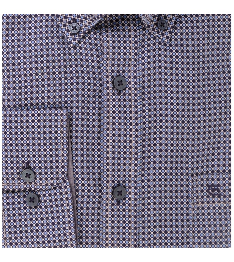 Grote Maten Overhemd lange mouw strijkvrij met borstzakje button down kraag casual fit goede pasvorm goede lengte krimpt niet bij het wassen 100%katoen prachtige print hededaags! kleur: blauw tinten