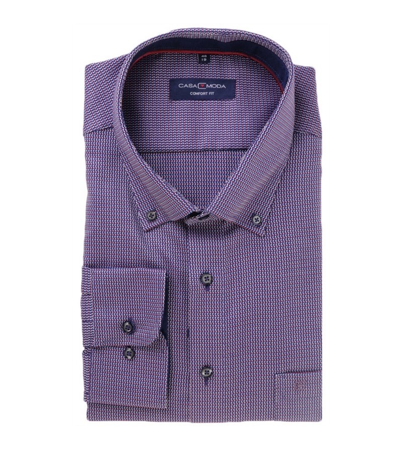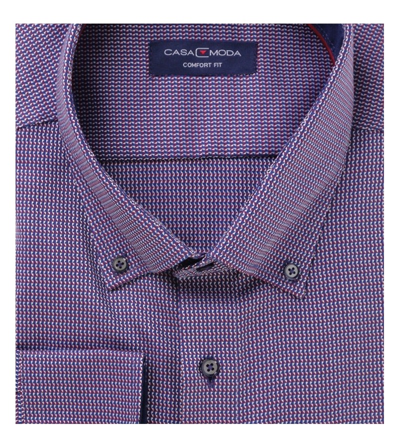 Big Man Hemd lange mouwen lange romplengte comfort fit cashmere feeling button down kraag bostzakje sportieve look comfortabel niet strijken mooi motief 100%katoen 30°was kleur: navy / rood