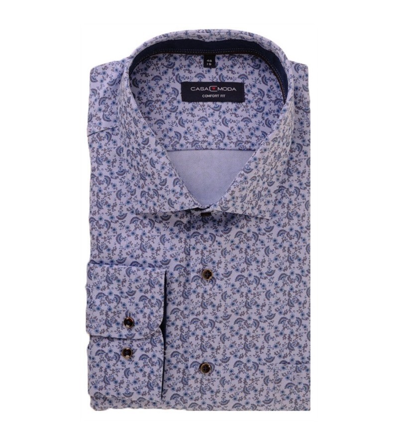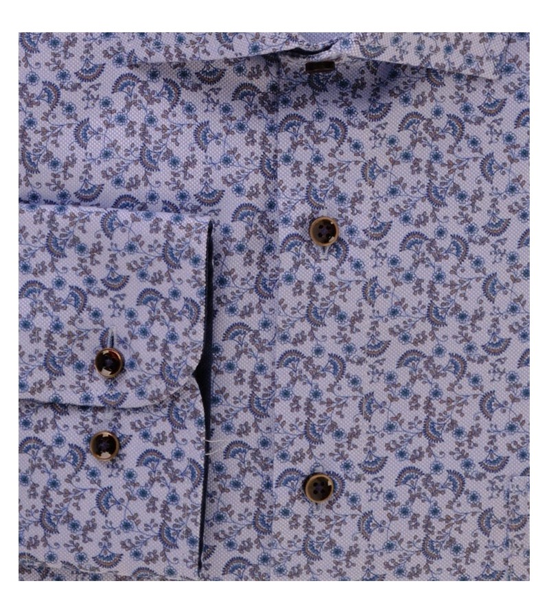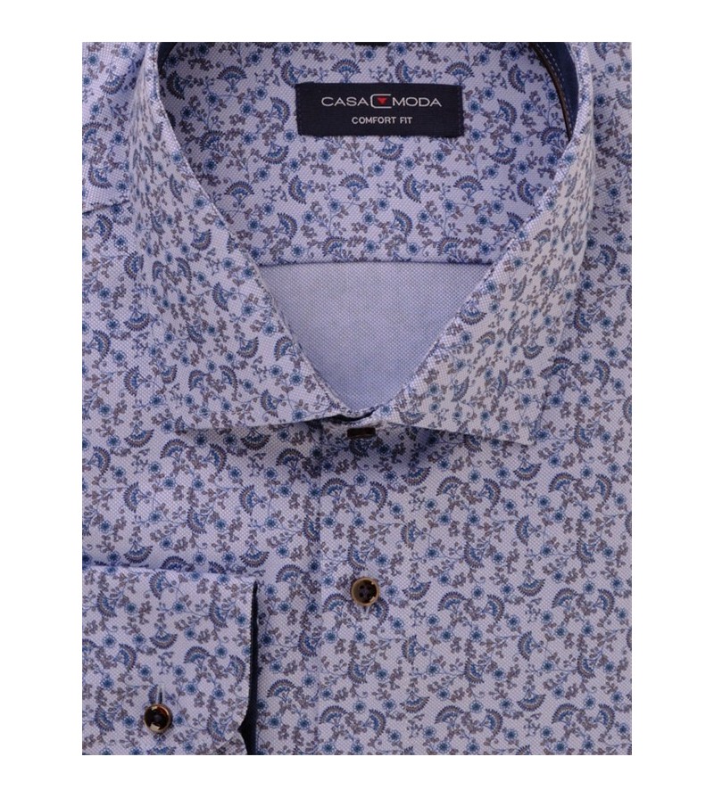 Big Man Hemd lange mouw comfort fit kent kraag borstzakje bloemetjesmotief comfortabel kwaliteit goede pasvorm 100%katoen 30°was kleur : blauw