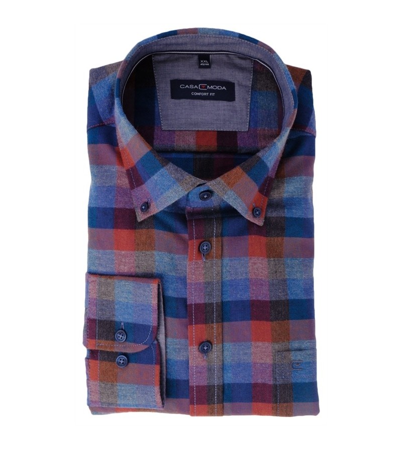 Big Man Hemd comfort fit lange mouwen kent kraag borstzakje subtiele ruitjes comfortabel kwaliteit 100%katoen 40°was kleur: rood / grijs / blauw