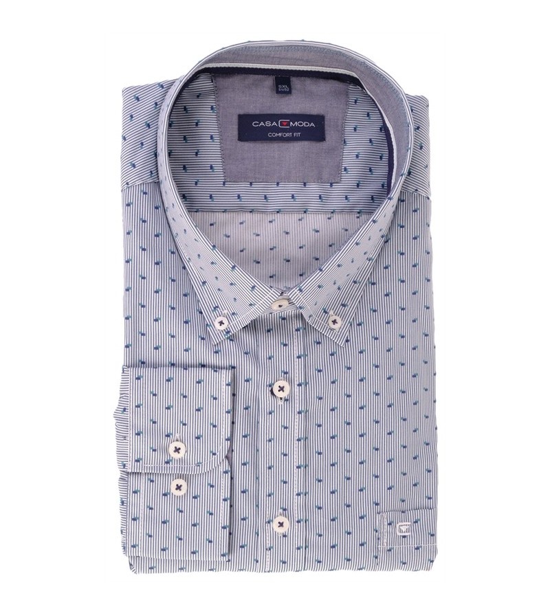 Grote Maten Overhemd lange mouw strijkvrij met borstzakje button down kraag casual fit goede pasvorm goede lengte krimpt niet bij het wassen 100%katoen prachtige print hededaags! kleur: blauw tinten