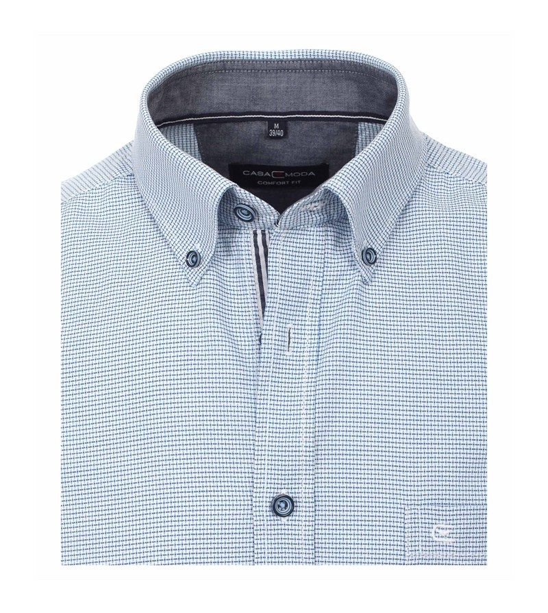 Big Man Hemd comfort fit lange mouwen kent kraag borstzakje subtiele ruitjes comfortabel kwaliteit 100%katoen 40°was kleur: blauw met stipje