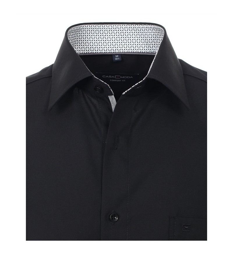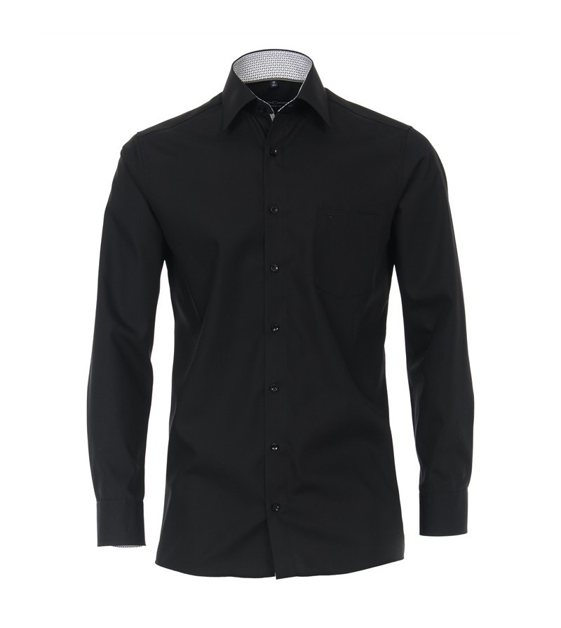 Big Man Hemd lange mouw comfort fit kent kraag borstzakje niet strijken kwaliteit goede pasvorm netjes afgewerkt comfortabel 100%katoen 40°was kleur : zwart