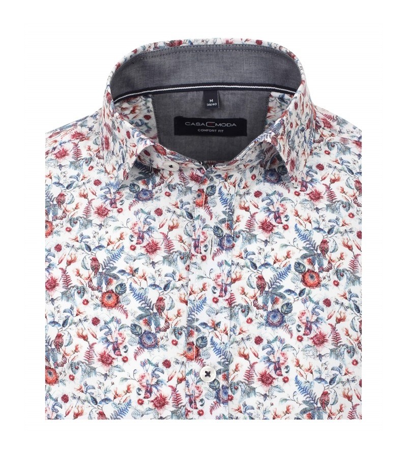 Big Man Hemd korte mouwen comfort fit kent kraag borstzakje netjes afgewerkt sportieve look leuk motief 100%katoen 40°was kleur: rood/ grijs