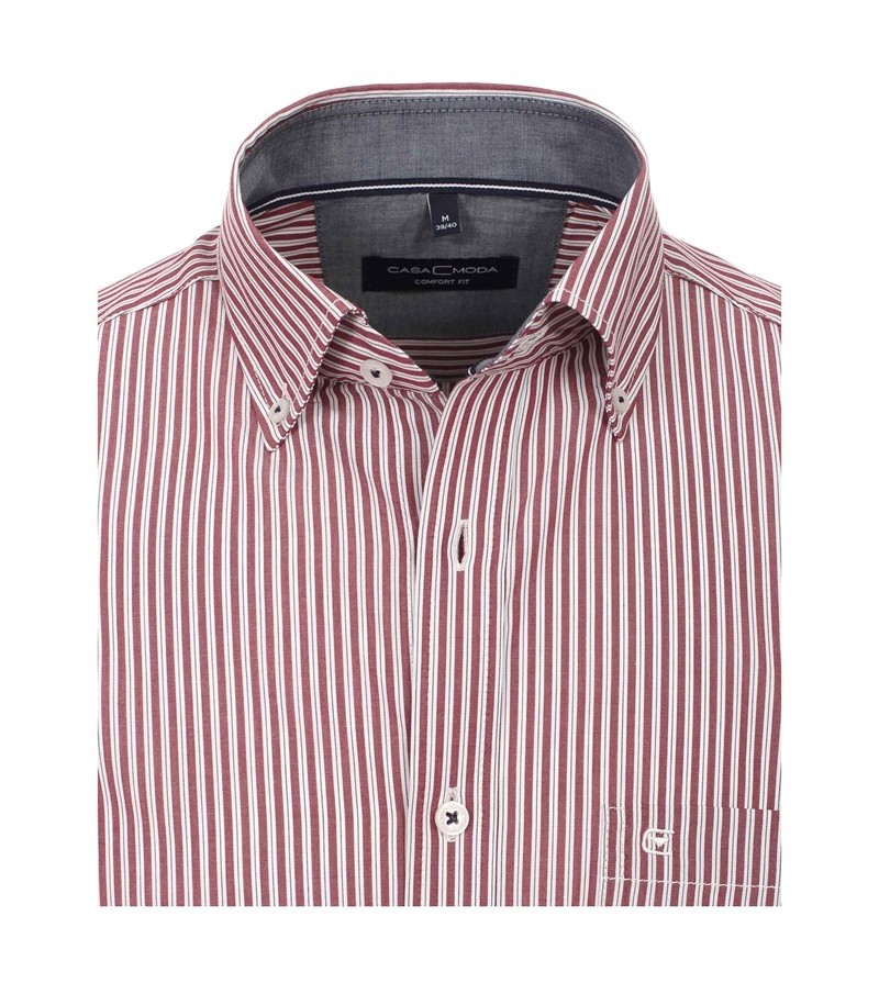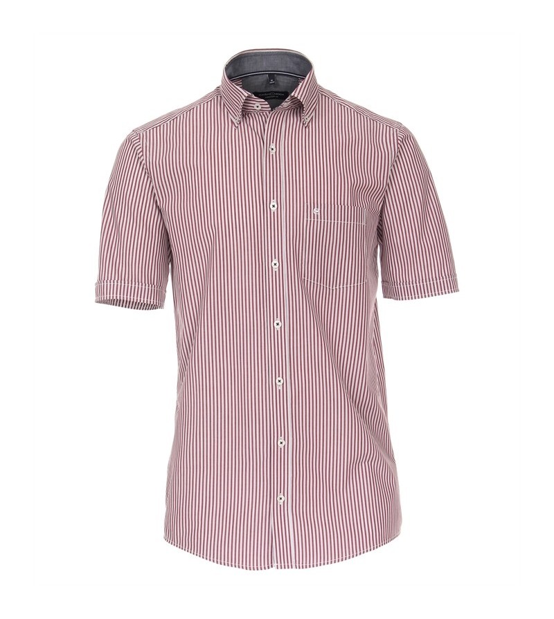 Big Man Hemd korte mouwen comfort fit button down kraag borstzakje comfortabel kwaliteit sportieve look 100%katoen 40°was met rode fantasie stipje motief: streepje kleur: licht grijs