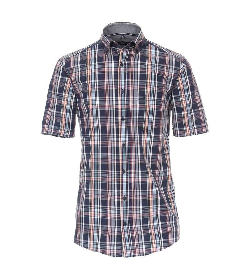 Big Man Hemd korte mouw comfort fit button down kraag borstzakje comfortabel zomers ruitjesmotief 100%katoen 40°was kleur: groen/ geel/ navy