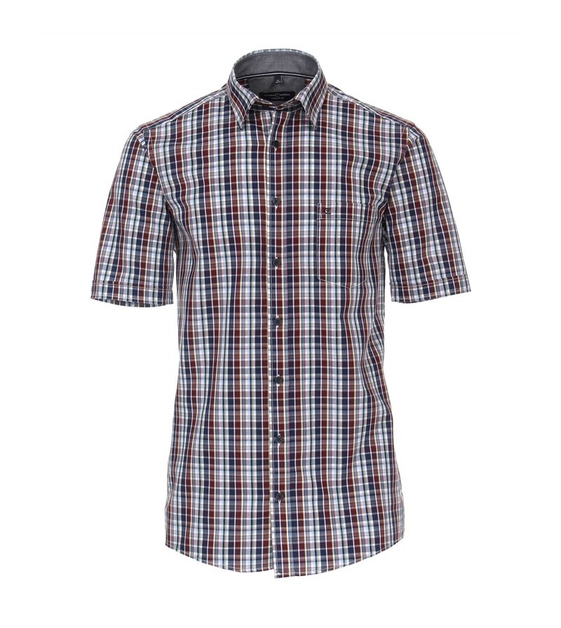 Big Man Hemd korte mouwen comfort fit kent kraag borstzakje netjes afgewerkt sportieve look leuk motief 100%katoen 40°was kleur: rood/ grijs