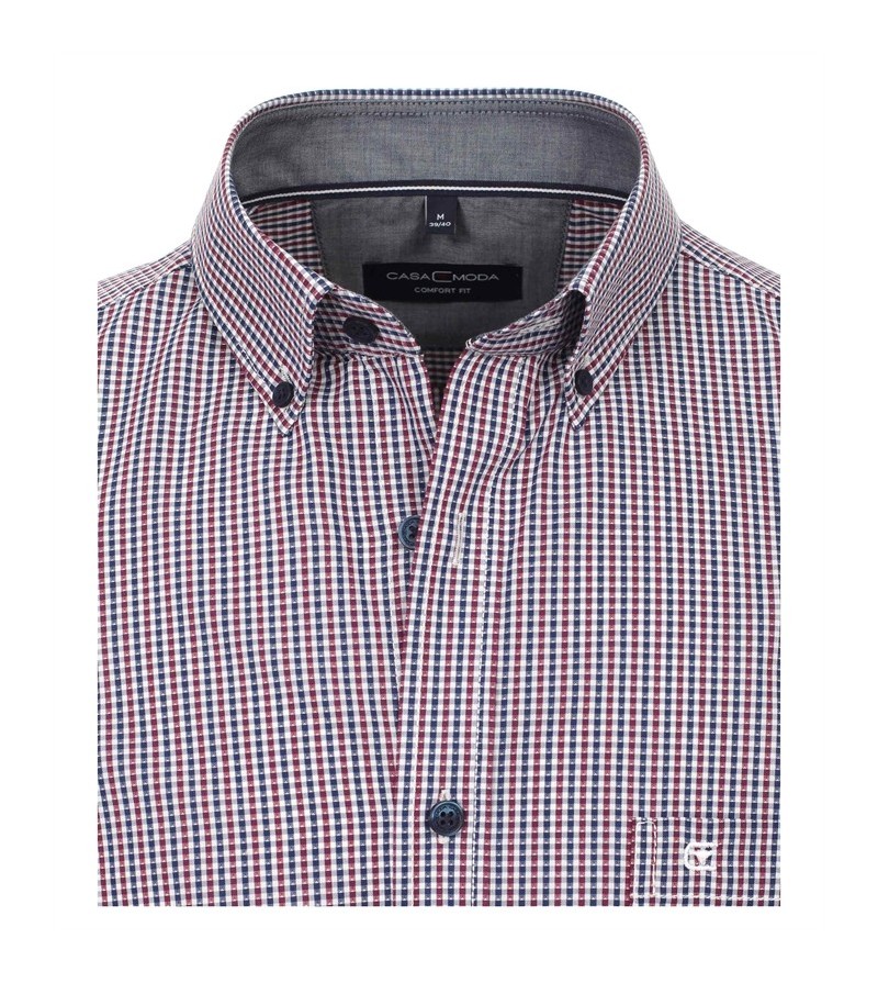 Big Man Hemd korte mouwen comfort fit kent kraag borstzakje netjes afgewerkt sportieve look leuk motief 100%katoen 40°was kleur: rood/ grijs