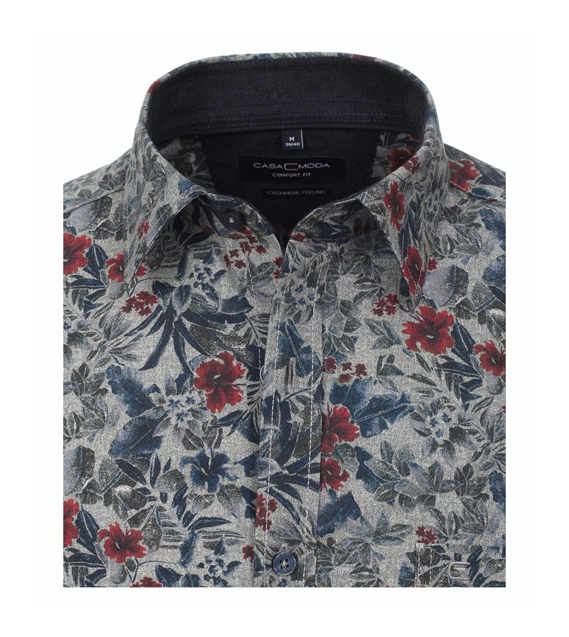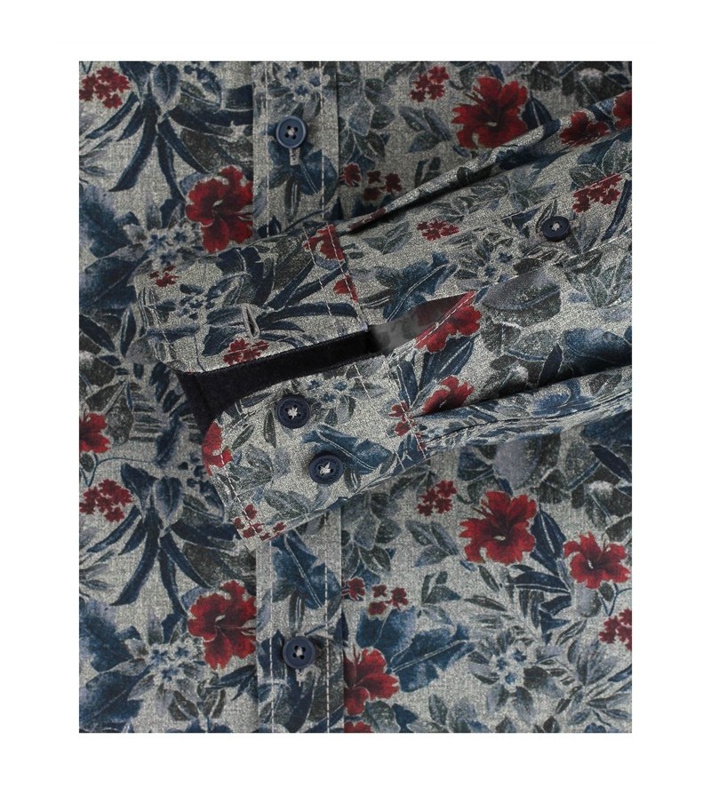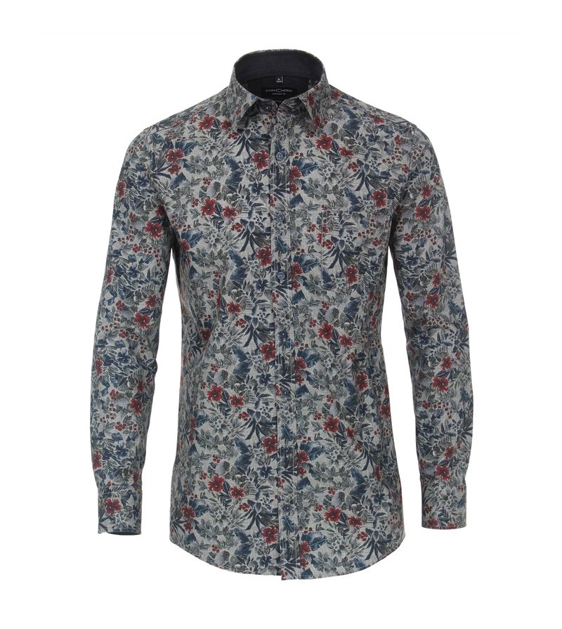 Big Man Hemd lange mouw comfort fit kent kraag borstzakje bloemetjesmotief comfortabel kwaliteit goede pasvorm 100%katoen 30°was kleur : blauw