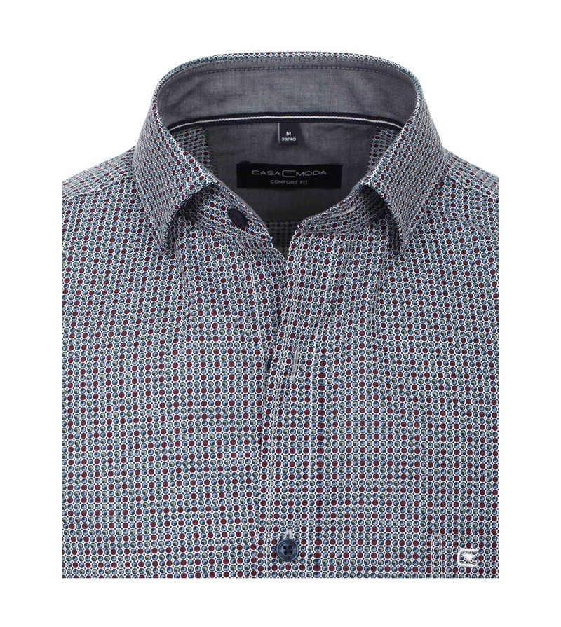 Big Man Hemd korte mouw comfort fit kent kraag borstzakje netjes afgewerkt kwaliteit comfortabel leuk motief 100%katoen 40°was kleur: blauw/ rood