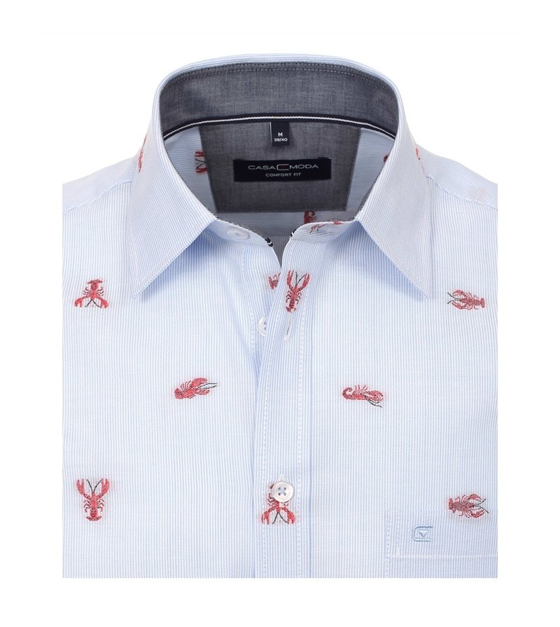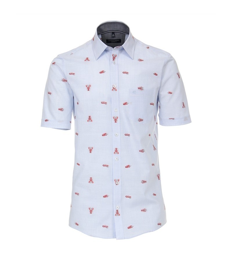 Big Man Hemd korte mouwen comfort fit kent kraag borstzakje easy care comfortabel leuk motief kwaliteit 100%katoen kleur: licht blauw