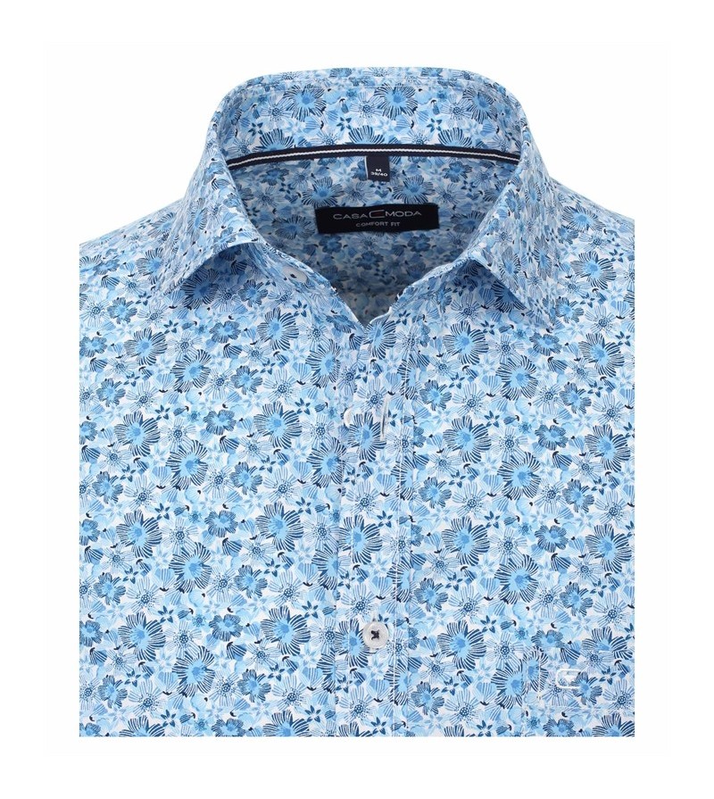 Big Man Hemd korte mouw comfort fit kent kraag borstzakje leuk motief niet strijken sportieve look 100%katoen 40°was kleur: blauw