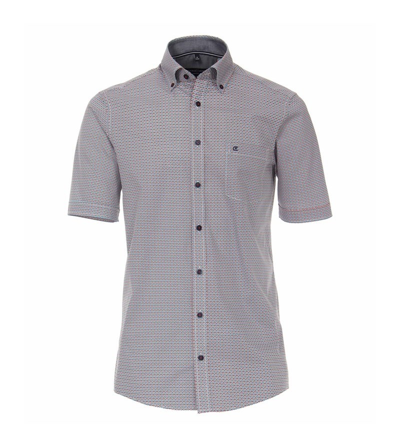Big Man Hemd korte mouwen comfort fit kent kraag borstzakje netjes afgewerkt sportieve look leuk motief 100%katoen 40°was kleur: rood/ grijs