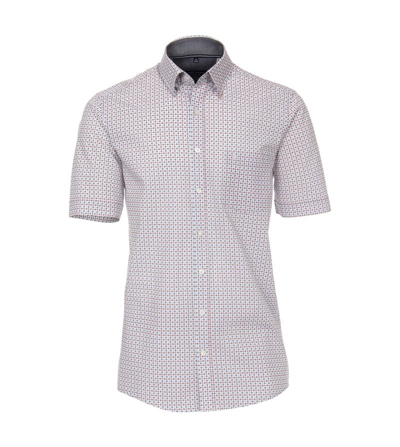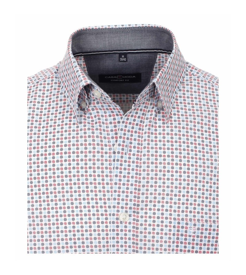 Big Man Hemd korte mouwen comfort fit kent kraag borstzakje netjes afgewerkt sportieve look leuk motief 100%katoen 40°was kleur: rood/ grijs
